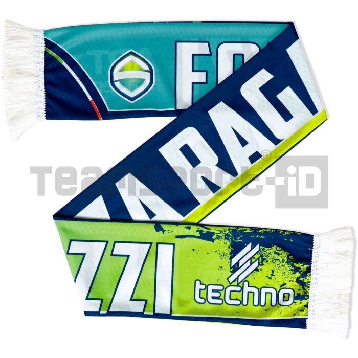Sciarpa completamente personalizzate in sublimatico, con stampa bifacciale, e frange in colore bianco.