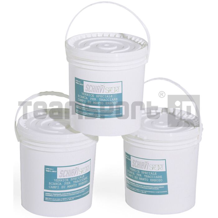 Per tracciature campi in erba, colore bianco, traspirante e atossica. Vernice speciale ottenuta da resine sintetiche particolarmente traspiranti, pigmenti pregiati, cariche micronizzate e l’aggiunta di silicati. La particolare formulazione è stata concepita per ottenere una perfetta linea bianca uniforme sull’erba, asciugamento rapido, resistenza e lavabilità all’acqua e grazie alle cariche specifiche uno spessore leggero ma uniforme che non danneggia il manto erboso. Tanica da lt 19(= kg 23) di vernice concentrata (non diluita). Prima dell’uso bisogna diluire la vernice in ragione di 1 parte di vernice e 3-4 parti di acqua. (diluita in queste percentuali si ottiene lt 75 minimo di vernice pronta per l’uso).