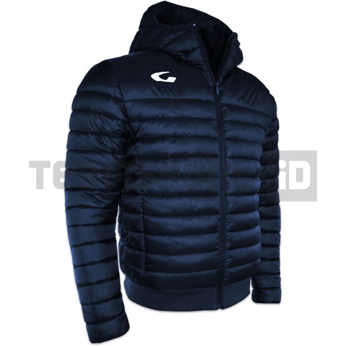 Collo alto, zip intera con coprizip, RIB alla vita, tasche esterne con zip + tasca interna, cappuccio e logo ricamato.