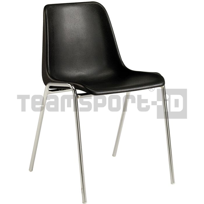 Sedia con scocca in PVC e struttura in metallo, impilabile.