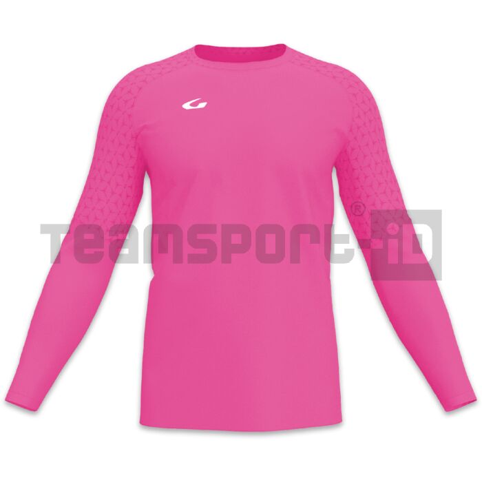 Maglia portiere DEFENSA: manica lunga, girocollo, monocromatica, realizzata in poliestere liscio, è decorata con texture GEMS a tono sulle spalle.
