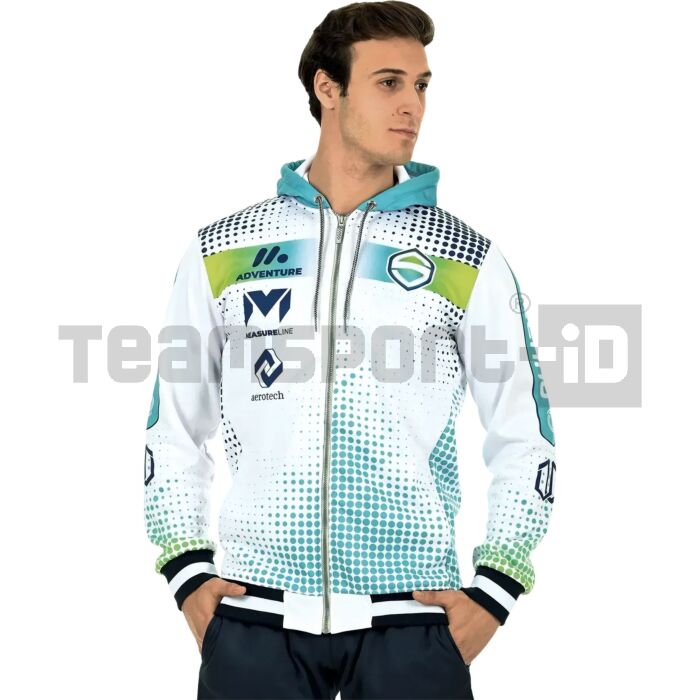 | Caratteristiche | Sublimazione Totale, Felpa e Giacca Tuta con Zip e Cappuccio |
