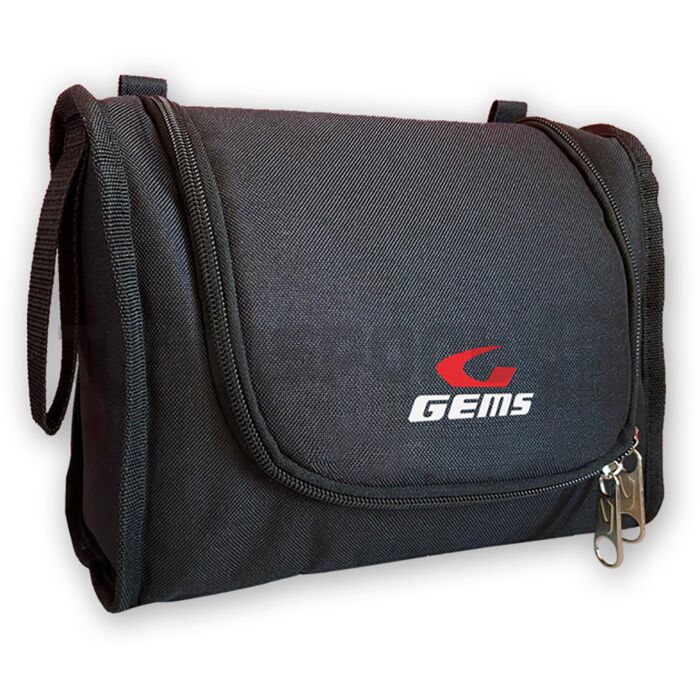 Il beauty case da viaggio PARIS, realizzato in poliestere, è dotato di chiusura zip, scomparti, tasca targhetta porta nome, manicotto in tessuto. Logo G GEMS stampato e gancio interno per essere appeso.