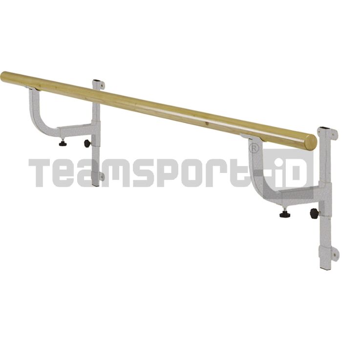 SBARRA DANZA PARETE 2 MENSOLE in legno diam mm 45/50, mensole a parete in acciaio zincato, registrabili in orizzontale e verticale ( orizzontale cm 25/30, verticale cm 23) lungh mt 2 – 2 mensole.