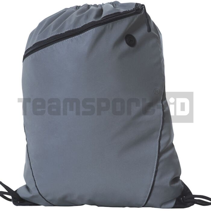 Sacca-zainetto in tessuto riflettente per l'alta visibilità notturna.